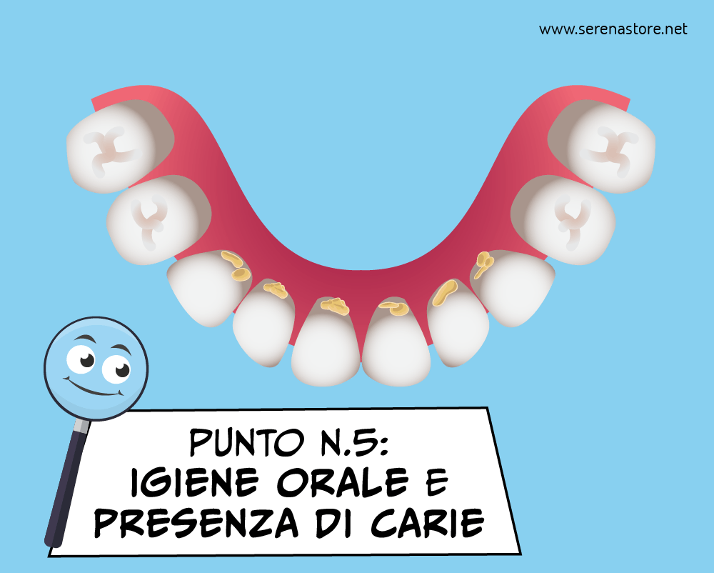 Infine, verificherà lo stato di salute generale della bocca (livello di igiene orale e presenza di carie)