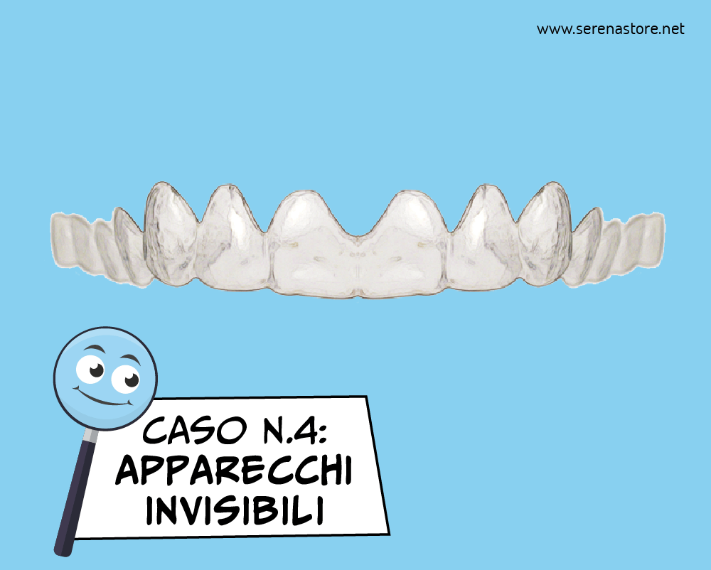 4: Apparecchi invisibili. Sono delle mascherine trasparenti che si posizionano sui denti, devono essere sostituite a intervalli prestabiliti. Possono essere utilizzate da adulti ed adolescenti, garantiscono un'ottima estetica e comfort